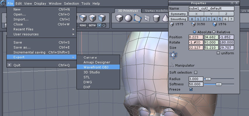 In “Export smooth” put 3, and 5 in “Export Displacement” depending of your Smoothing of your model and select the image that you like. Make sure you remember the “Disp coef” number to add later in 3ds Max and click validate.